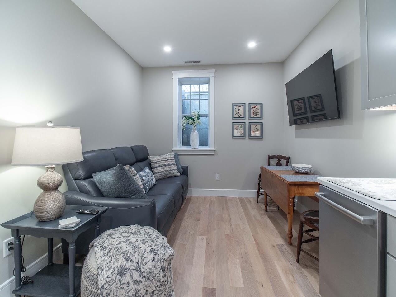 The 73 Cook Lower unit offers a cozy and convenient basement unit—perfect for guests seeking a comfortable retreat. This well-appointed unit features a full-size kitchen, two bedrooms with queen beds, a smart TV, fiber optic Wi-Fi, central AC, and a private washer and dryer for added convenience. Both bedrooms and the living room feature window wells that allow natural light to brighten each space. With its prime location and modern amenities, this basement unit is a fantastic option for a peaceful stay at Chautauqua Institution. It can also be rented in combination with the main house above to accommodate overflow guests, making it ideal for larger groups. NO SMOKING / NO PETS **Parking available at the Main CHQ lot - passes must be purchased through the Chautauqua Institution ticketing office