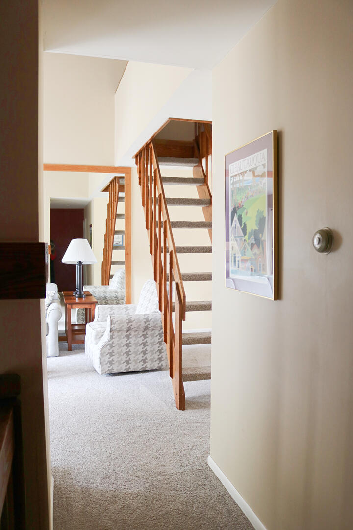 A great rental for your next family vacation! This is a timeshare condominium complex located on the northern end of Chautauqua Institution at 20 Elm Lane. These modern condos feature 1 parking space (during season you must purchase parking passes from Chautauqua Institution in order to occupy this space). There are two in-ground pools, perfect for cooling off and relaxing during the beautiful Chautauqua summer season. Offered year round, several units are privately owned in addition to 11 "RCI" timeshares. Perfect for the family both on and off-season. Enjoy the many amenities these condos have to offer such as 1 gas grill, a gas fireplace, central A/C, cable TV, and Wi-Fi. These units sleep 8 Max - Bedroom #1: Queen; Bedroom #2: 2 Twins; LOFT: 2 Twins; Living room: sofa sleeper. (All timeshare units provide 2 bedrooms plus loft and 2.5 baths). This is a great place for your Chautauqua Institution rental! Trip Cancellation Insurance is available upon request. **NO SMOKING/PETS** On site parking passes for this property purchased through Chautauqua Institution ticketing office.