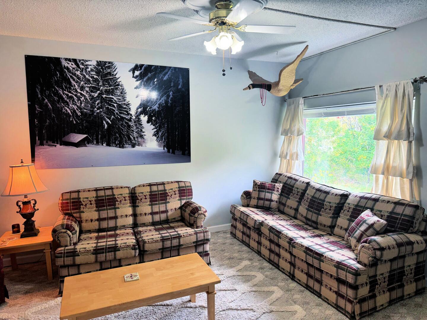 This newly updated seasonal barn apartment rental offers the perfect blend of comfort and character, featuring two cozy bedrooms and one full bathroom. Both bedrooms are furnished with comfortable double beds, while two sleeper sofas provide additional sleeping options—one with a twin mattress and the other with a half double—ideal for family or guests. Warm and welcoming, this home is just a short stroll from the scenic village of Ellicottville, offering easy access to shops, dining, and winter activities. Just minutes from both Holiday Valley and Holimont. Whether you're here to unwind or explore, this charming retreat is the perfect place to call home for the season.